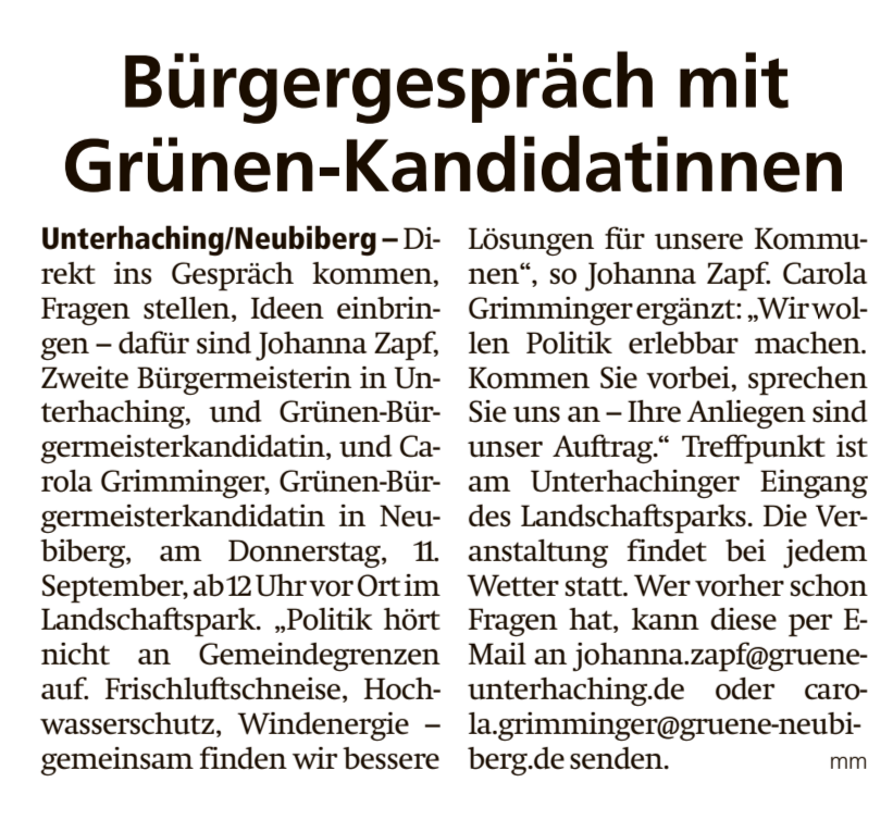 Grüne nominieren Bürgermeisterkandidatin in Neubiberg